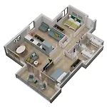 V každém pokoji je osobní sejf, pohovka a přístroj na přípravu kávy/čaje spolu s mikrovlnnou troubou, rychlovarnou konvicí a chladničkou v kuchyni. V koupelnách je samostatná toaleta a sprcha.